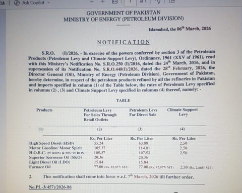MoreISLAMABAD – Petroleum division notified a revised rate upward by a maximum of Rs 8 per litre affective from March 1 (today)